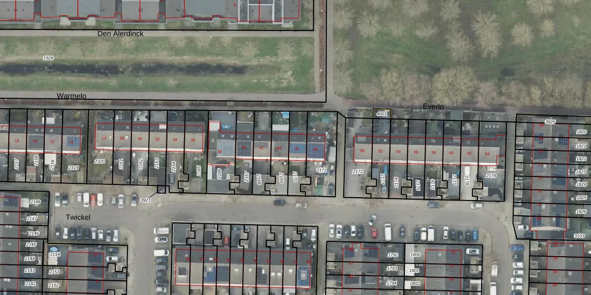 Gebruik de zoekbalk of klik op een perceel voor informatie over de adressen binnen dit perceel.