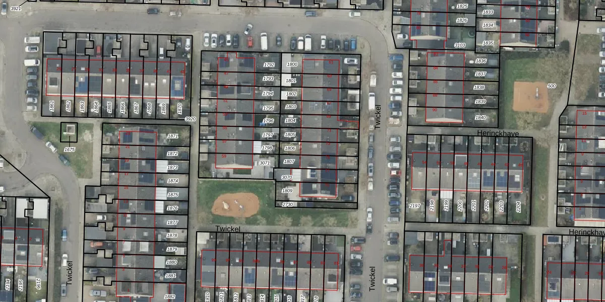 Gebruik de zoekbalk of klik op een perceel voor informatie over de adressen binnen dit perceel.