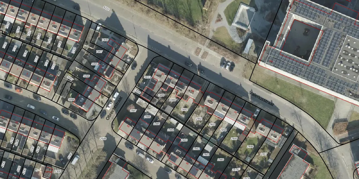 Gebruik de zoekbalk of klik op een perceel voor informatie over de adressen binnen dit perceel.