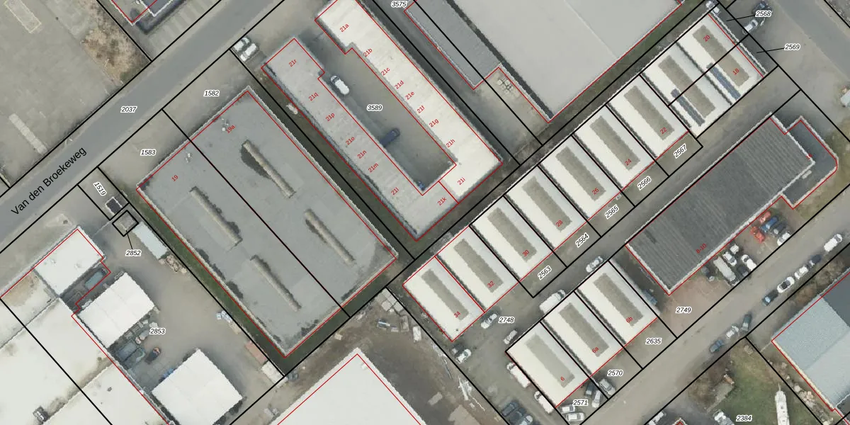 Het perceel waarop Van den Broekeweg 21-k staat heeft een oppervlakte van 2191 m². Dit is een zeer groot perceel. De perceeloppervlakte wordt geregistreerd door het Kadaster. Gedetailleerde informatie over de maten van dit perceel kunt u vinden in het rapport Kadastrale kaart met maatvoering van Van den Broekeweg 21-k.