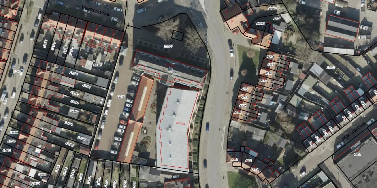 Veldkersstraat 2-11 is gelegen op kadastraal perceel AML01H13176. Deze kadastrale aanduiding is uniek en wordt gebruikt door het Kadaster om eigendomsrechten en andere zakelijke rechten vast te leggen. Het perceel maakt onderdeel uit van de kadastrale gemeente Ambt-Almelo.