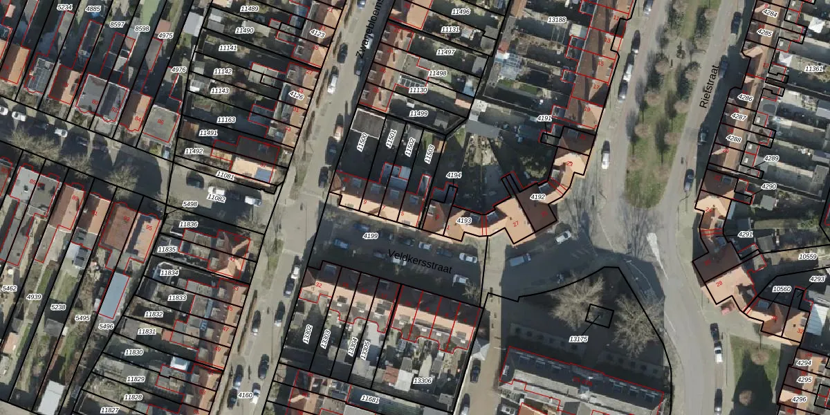 Gebruik de zoekbalk of klik op een perceel voor informatie over de adressen binnen dit perceel.