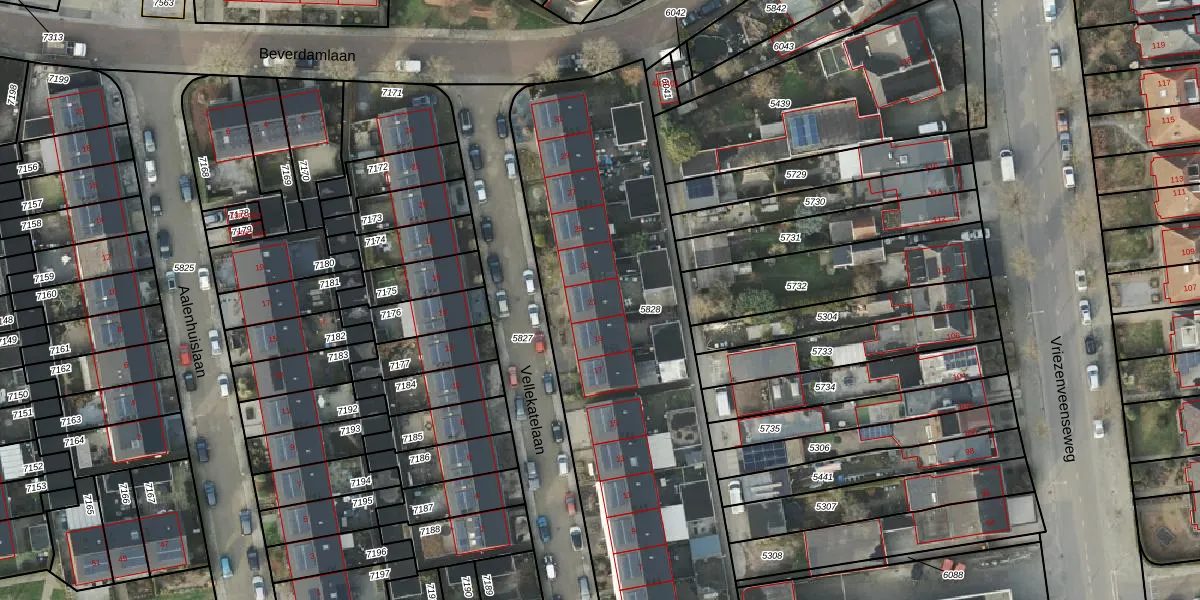 Vellekatelaan 21 is gelegen op kadastraal perceel AML01A5828. Deze kadastrale aanduiding is uniek en wordt gebruikt door het Kadaster om eigendomsrechten en andere zakelijke rechten vast te leggen. Het perceel maakt onderdeel uit van de kadastrale gemeente Ambt-Almelo.