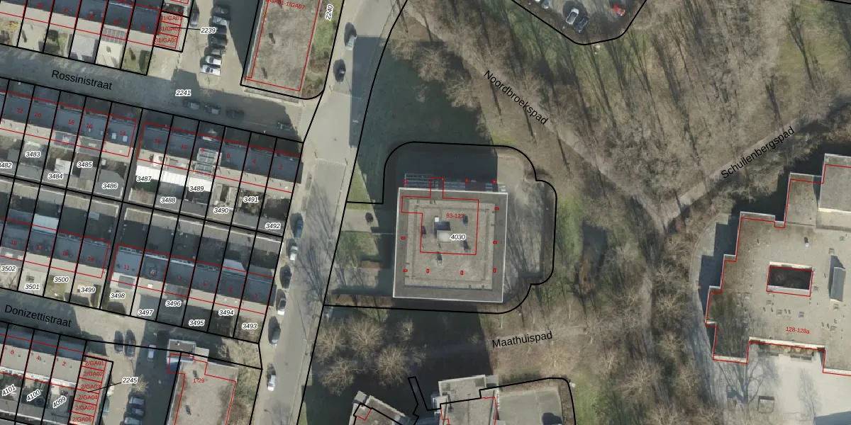 Het perceel waarop Verdilaan 101 staat heeft een oppervlakte van 1745 m². Dit is een zeer groot perceel. De perceeloppervlakte wordt geregistreerd door het Kadaster. Gedetailleerde informatie over de maten van dit perceel kunt u vinden in het rapport Kadastrale kaart met maatvoering van Verdilaan 101.