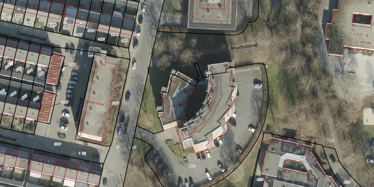 Verdilaan 13 is gelegen op kadastraal perceel AML01I4312. Deze kadastrale aanduiding is uniek en wordt gebruikt door het Kadaster om eigendomsrechten en andere zakelijke rechten vast te leggen. Het perceel maakt onderdeel uit van de kadastrale gemeente Ambt-Almelo.