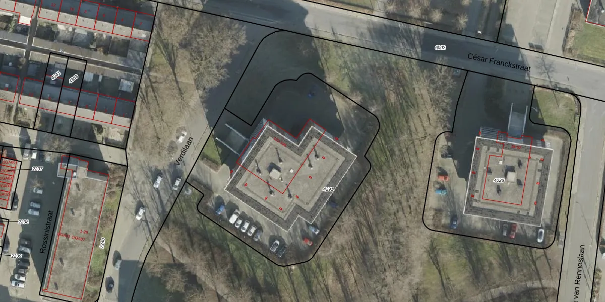 Verdilaan 141 is gelegen op kadastraal perceel AML01I4291. Deze kadastrale aanduiding is uniek en wordt gebruikt door het Kadaster om eigendomsrechten en andere zakelijke rechten vast te leggen. Het perceel maakt onderdeel uit van de kadastrale gemeente Ambt-Almelo.