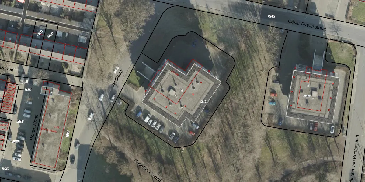 Het perceel waarop Verdilaan 155 staat heeft een oppervlakte van 2548 m². Dit is een zeer groot perceel. De perceeloppervlakte wordt geregistreerd door het Kadaster. Gedetailleerde informatie over de maten van dit perceel kunt u vinden in het rapport Kadastrale kaart met maatvoering van Verdilaan 155.