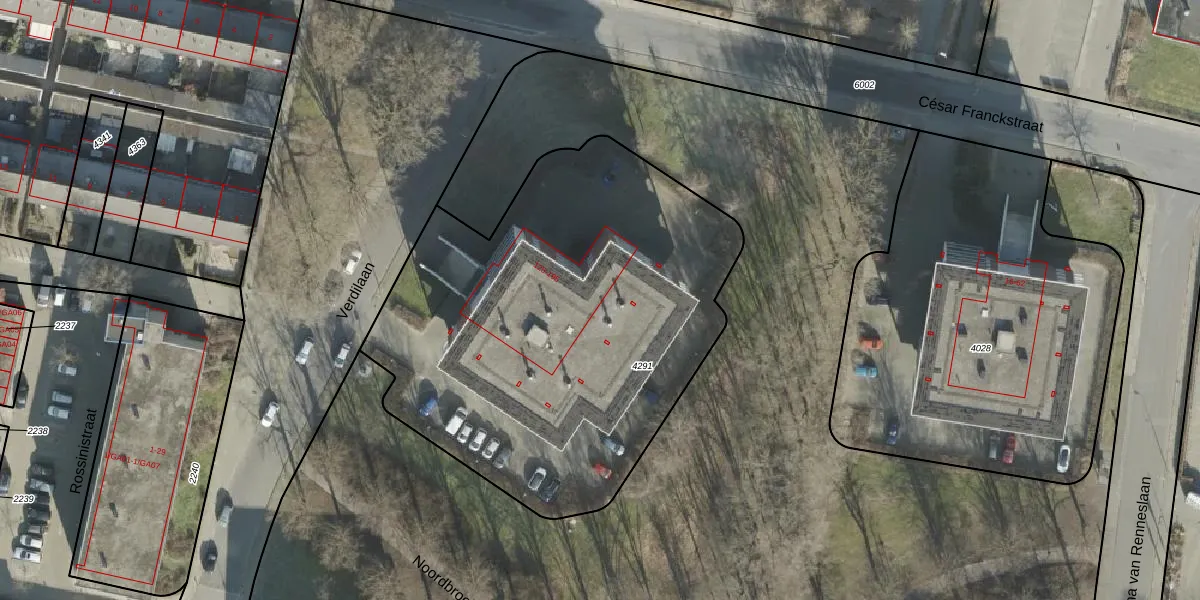 Verdilaan 165 is gelegen op kadastraal perceel AML01I4291. Deze kadastrale aanduiding is uniek en wordt gebruikt door het Kadaster om eigendomsrechten en andere zakelijke rechten vast te leggen. Het perceel maakt onderdeel uit van de kadastrale gemeente Ambt-Almelo.