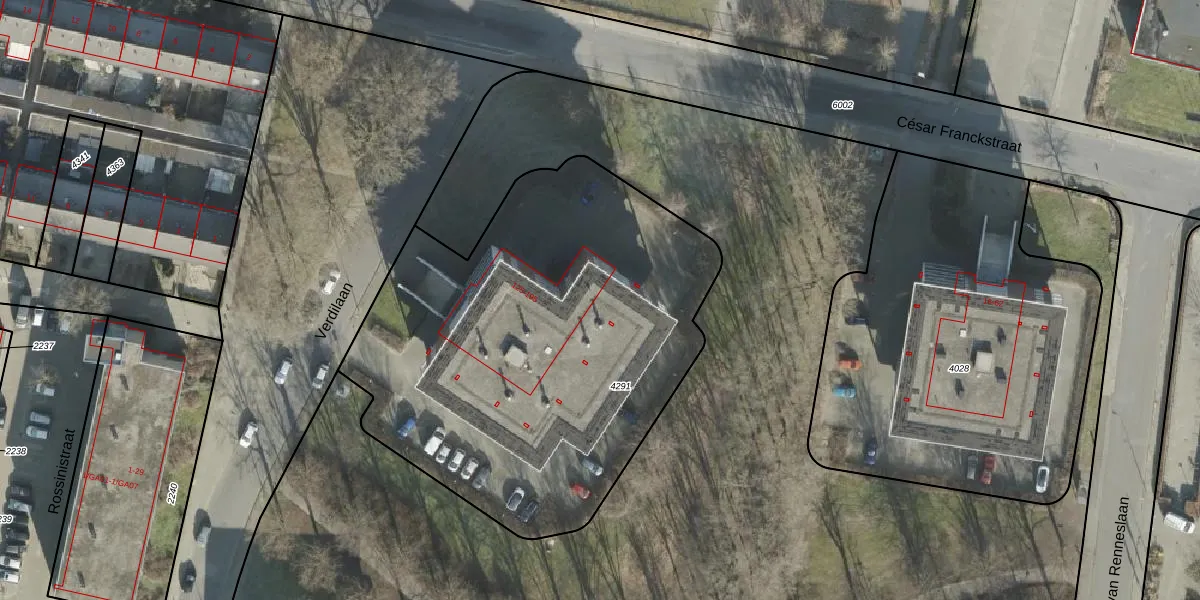 Verdilaan 175 is gelegen op kadastraal perceel AML01I4291. Deze kadastrale aanduiding is uniek en wordt gebruikt door het Kadaster om eigendomsrechten en andere zakelijke rechten vast te leggen. Het perceel maakt onderdeel uit van de kadastrale gemeente Ambt-Almelo.