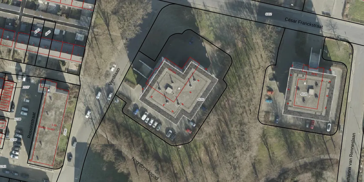 Het perceel waarop Verdilaan 179 staat heeft een oppervlakte van 2548 m². Dit is een zeer groot perceel. De perceeloppervlakte wordt geregistreerd door het Kadaster. Gedetailleerde informatie over de maten van dit perceel kunt u vinden in het rapport Kadastrale kaart met maatvoering van Verdilaan 179.