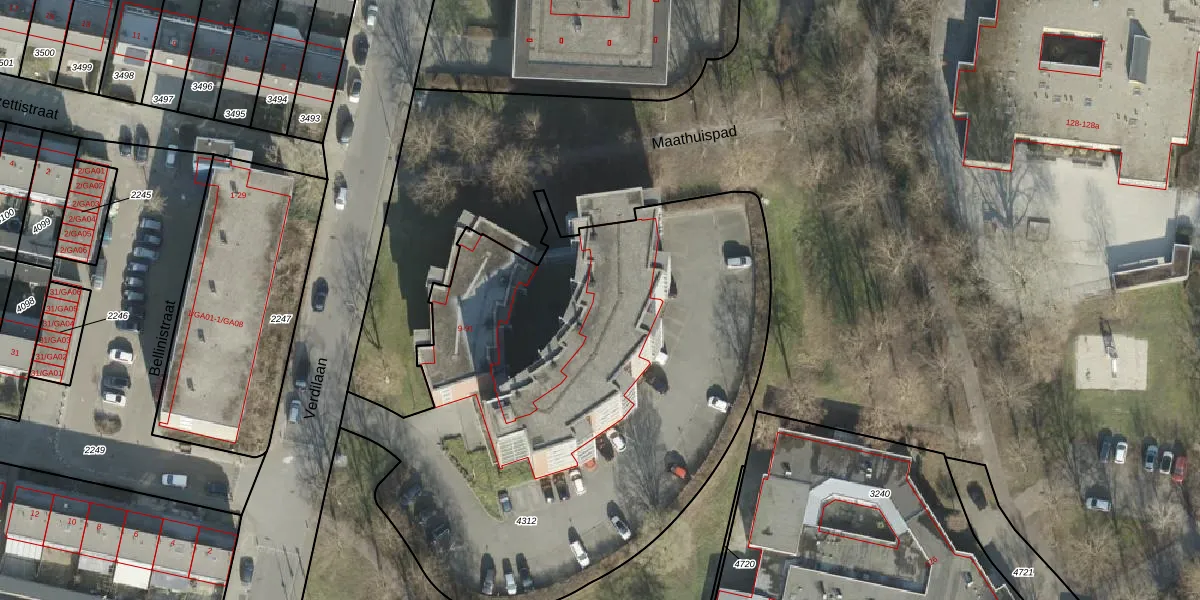Verdilaan 23 is gelegen op kadastraal perceel AML01I4312. Deze kadastrale aanduiding is uniek en wordt gebruikt door het Kadaster om eigendomsrechten en andere zakelijke rechten vast te leggen. Het perceel maakt onderdeel uit van de kadastrale gemeente Ambt-Almelo.