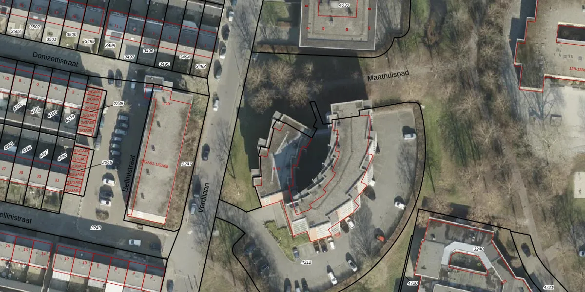 Verdilaan 35 is gelegen op kadastraal perceel AML01I4312. Deze kadastrale aanduiding is uniek en wordt gebruikt door het Kadaster om eigendomsrechten en andere zakelijke rechten vast te leggen. Het perceel maakt onderdeel uit van de kadastrale gemeente Ambt-Almelo.