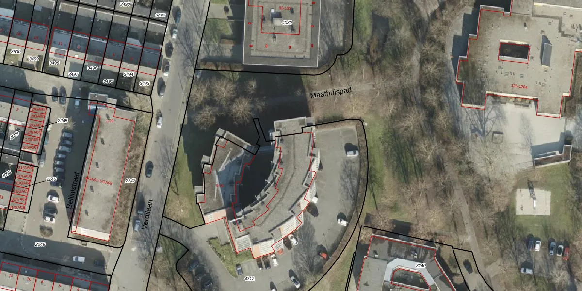 Verdilaan 53 is gelegen op kadastraal perceel AML01I4312. Deze kadastrale aanduiding is uniek en wordt gebruikt door het Kadaster om eigendomsrechten en andere zakelijke rechten vast te leggen. Het perceel maakt onderdeel uit van de kadastrale gemeente Ambt-Almelo.