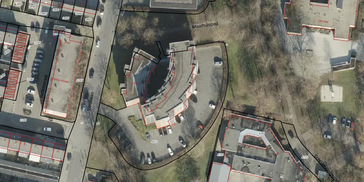 Het perceel waarop Verdilaan 77 staat heeft een oppervlakte van 3270 m². Dit is een zeer groot perceel. De perceeloppervlakte wordt geregistreerd door het Kadaster. Gedetailleerde informatie over de maten van dit perceel kunt u vinden in het rapport Kadastrale kaart met maatvoering van Verdilaan 77.