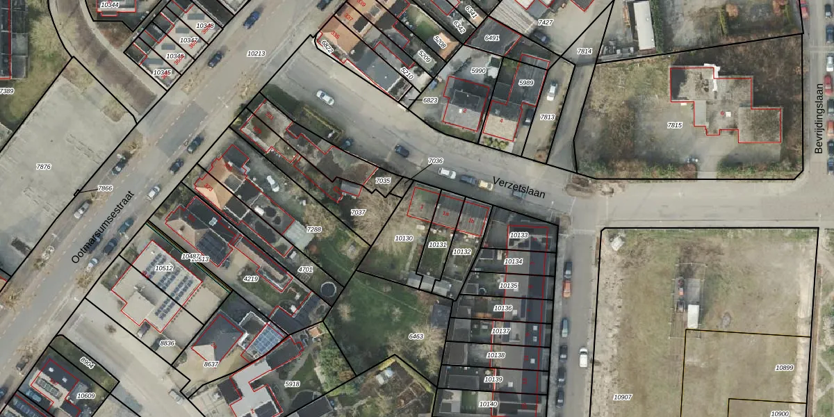 Het perceel waarop Verzetslaan 1 staat heeft een oppervlakte van 265 m². Dit is een middelgroot perceel. De perceeloppervlakte wordt geregistreerd door het Kadaster. Gedetailleerde informatie over de maten van dit perceel kunt u vinden in het rapport Kadastrale kaart met maatvoering van Verzetslaan 1.