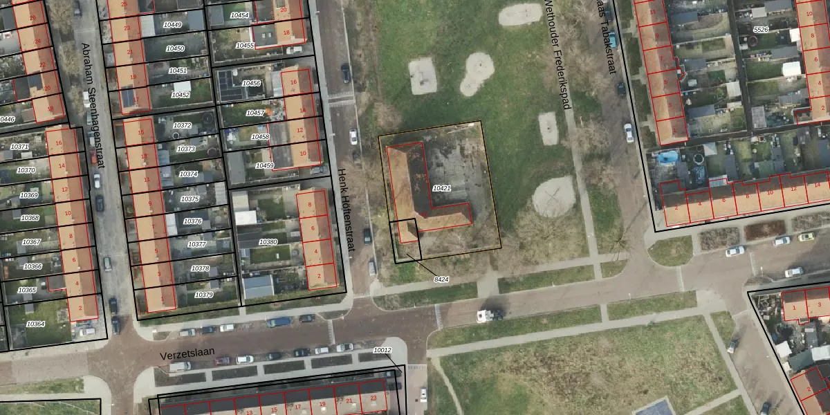 Gebruik de zoekbalk of klik op een perceel voor informatie over de adressen binnen dit perceel.