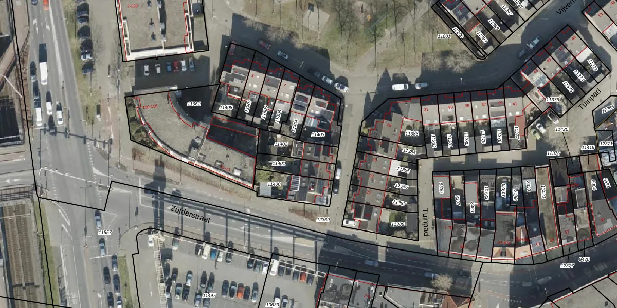 Gebruik de zoekbalk of klik op een perceel voor informatie over de adressen binnen dit perceel.