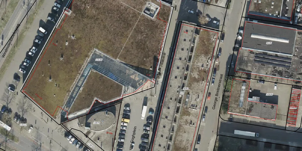 Het perceel waarop Vincent van Goghplein 1 staat heeft een oppervlakte van 6339 m². Dit is een zeer groot perceel. De perceeloppervlakte wordt geregistreerd door het Kadaster. Gedetailleerde informatie over de maten van dit perceel kunt u vinden in het rapport Kadastrale kaart met maatvoering van Vincent van Goghplein 1.