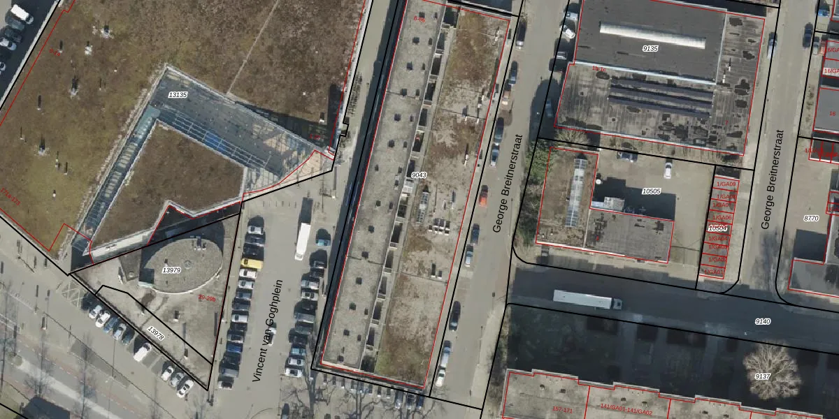 Vincent van Goghplein 54 is gelegen op kadastraal perceel AML01H9043. Deze kadastrale aanduiding is uniek en wordt gebruikt door het Kadaster om eigendomsrechten en andere zakelijke rechten vast te leggen. Het perceel maakt onderdeel uit van de kadastrale gemeente Ambt-Almelo.