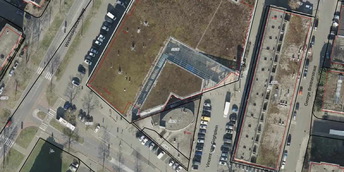 Het perceel waarop Vincent van Goghplein 7 staat heeft een oppervlakte van 6339 m². Dit is een zeer groot perceel. De perceeloppervlakte wordt geregistreerd door het Kadaster. Gedetailleerde informatie over de maten van dit perceel kunt u vinden in het rapport Kadastrale kaart met maatvoering van Vincent van Goghplein 7.