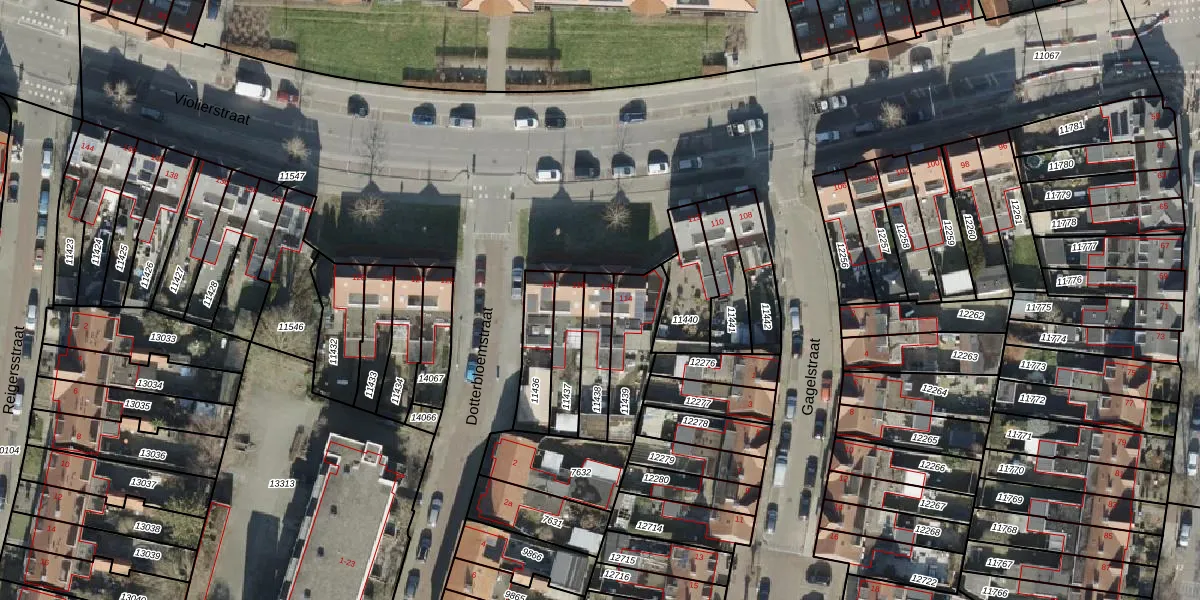 Gebruik de zoekbalk of klik op een perceel voor informatie over de adressen binnen dit perceel.
