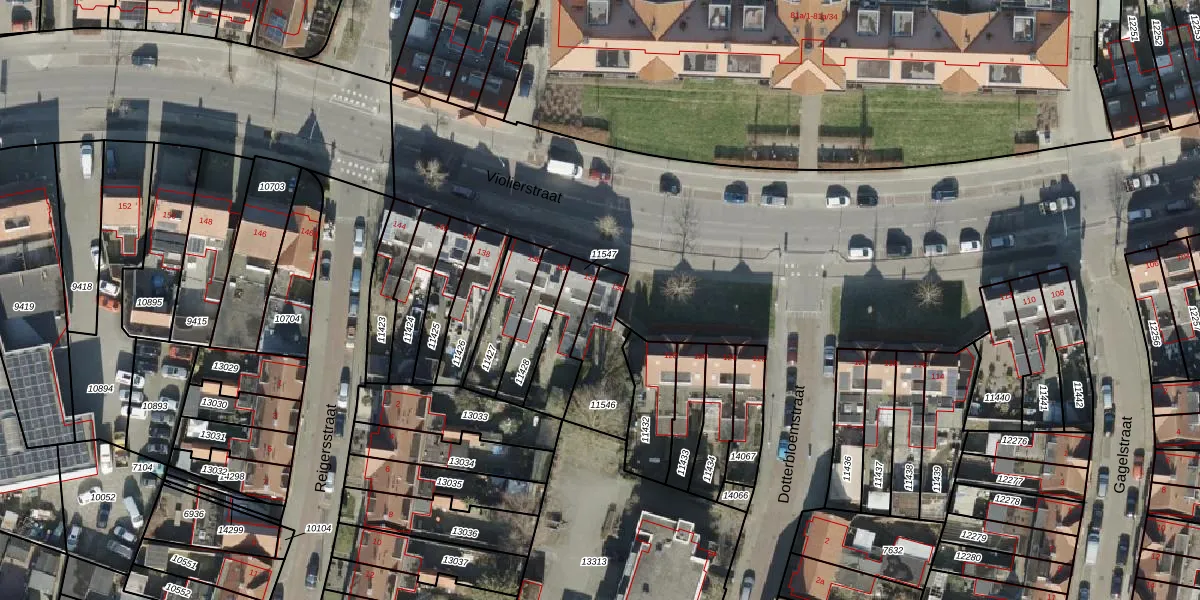 Gebruik de zoekbalk of klik op een perceel voor informatie over de adressen binnen dit perceel.