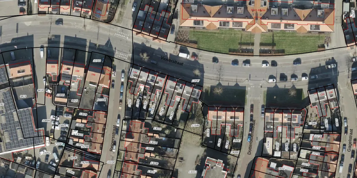 Gebruik de zoekbalk of klik op een perceel voor informatie over de adressen binnen dit perceel.