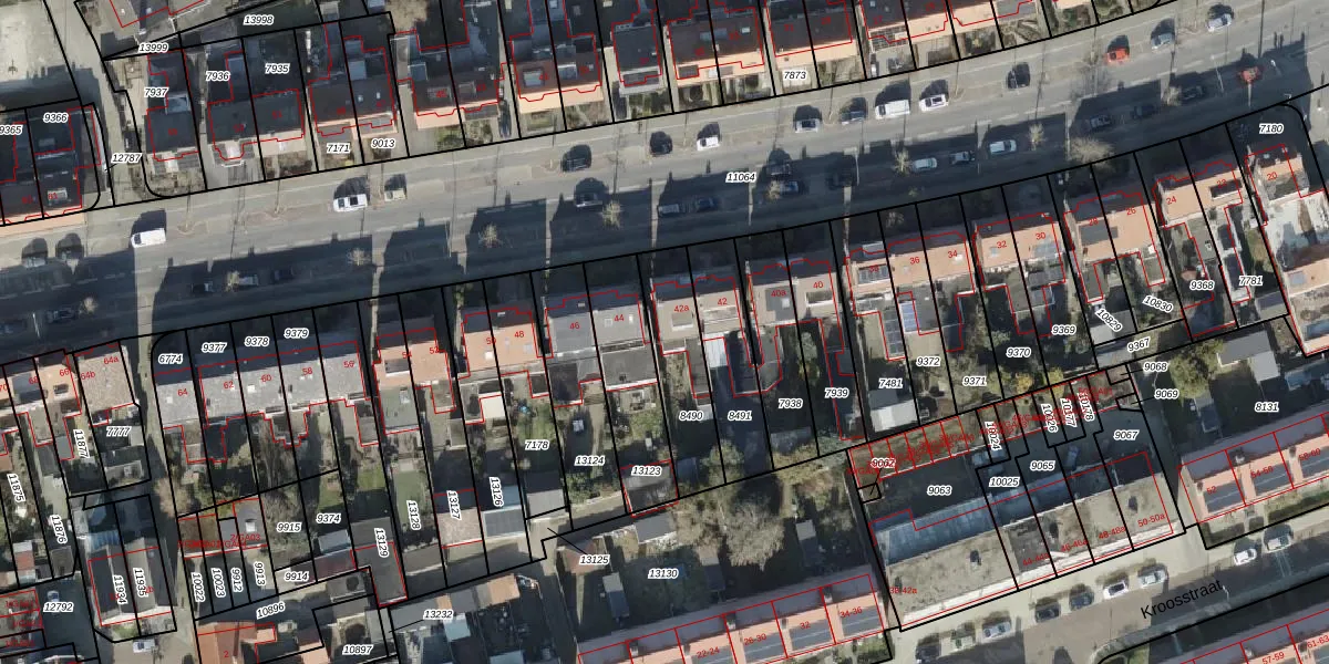 Gebruik de zoekbalk of klik op een perceel voor informatie over de adressen binnen dit perceel.