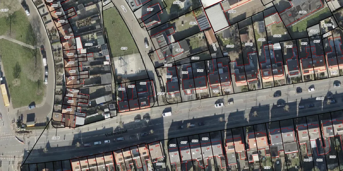 Gebruik de zoekbalk of klik op een perceel voor informatie over de adressen binnen dit perceel.