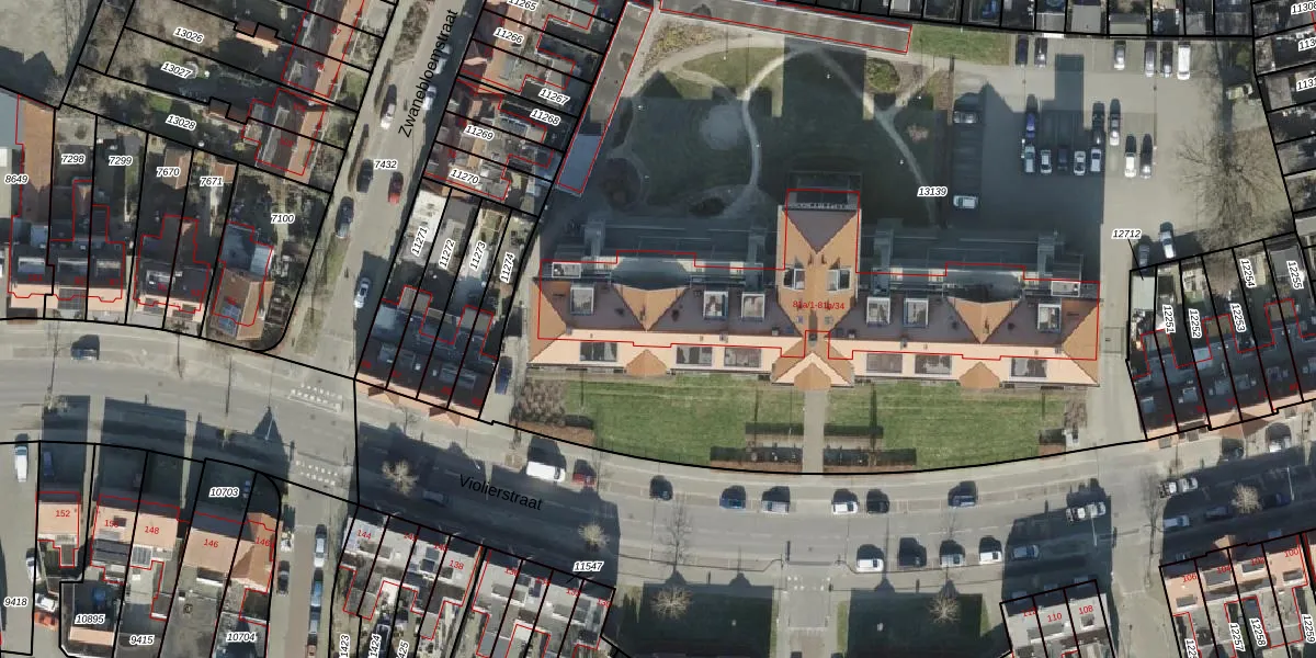 Het perceel waarop Violierstraat 81-a-12 staat heeft een oppervlakte van 6850 m². Dit is een zeer groot perceel. De perceeloppervlakte wordt geregistreerd door het Kadaster. Gedetailleerde informatie over de maten van dit perceel kunt u vinden in het rapport Kadastrale kaart met maatvoering van Violierstraat 81-a-12.