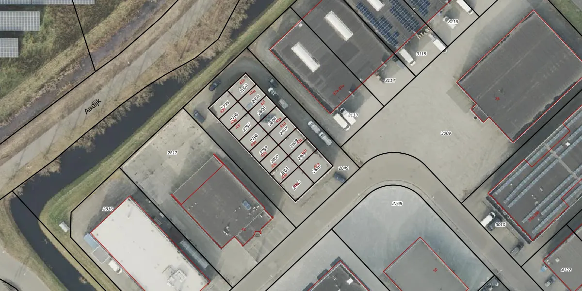 Het perceel waarop het adres ligt is AML01-K-2808. De afkorting 'AML01' staat voor kadastrale gemeente Ambt-Almelo. Het perceel is 45 m² groot. Dat is kleiner dan de gemiddelde perceeloppervlakte in Ambt-Almelo, dat op 2066,47 m² ligt. De grootste perceeloppervlakte in de kadastrale gemeente is 67,4 ha. De kleinste oppervlakte bedraagt 0 m². Dit is het enige adres dat aanwezig is op het perceel. De huidige grenzen van het perceel zijn digitaal in de Basisregistratie Kadaster (BRK) geregistreerd op 16-11-2007.