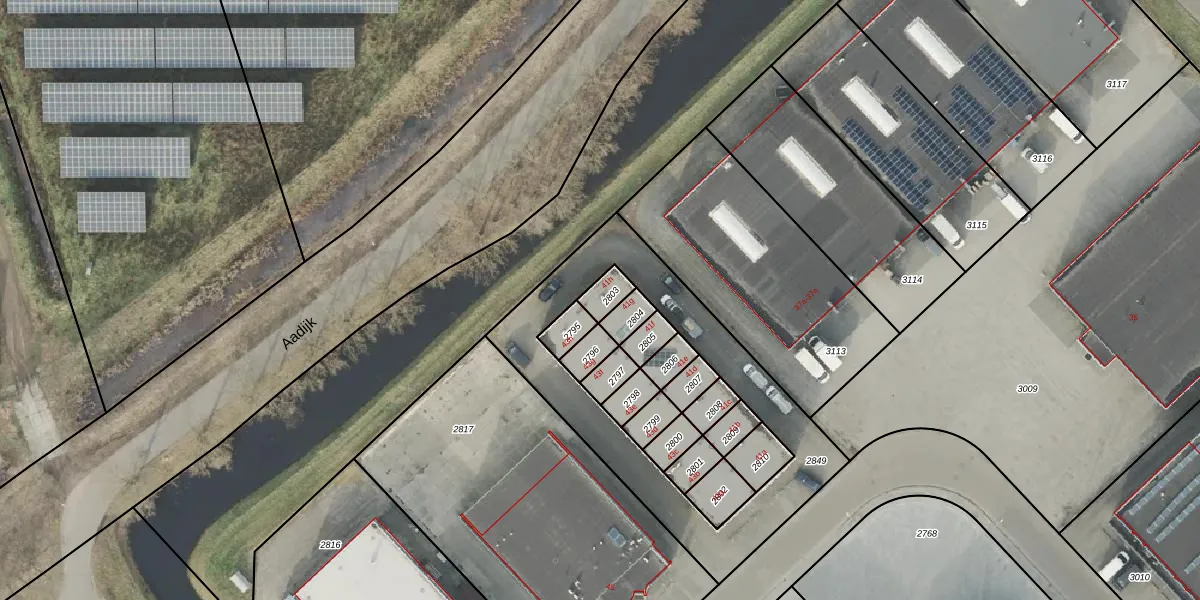 Het perceel waarop het adres ligt is AML01-K-2803. De afkorting 'AML01' staat voor kadastrale gemeente Ambt-Almelo. Het perceel is 47 m² groot. Dat is kleiner dan de gemiddelde perceeloppervlakte in Ambt-Almelo, dat op 2066,47 m² ligt. De grootste perceeloppervlakte in de kadastrale gemeente is 67,4 ha. De kleinste oppervlakte bedraagt 0 m². Dit is het enige adres dat aanwezig is op het perceel. In de Basisregistratie Kadaster (BRK) werden de grenzen van het perceel geregistreerd op 16-11-2007.