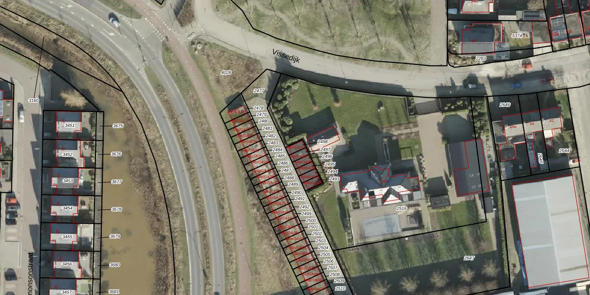 Vissedijk 44-b-GA04 is gelegen op kadastraal perceel AML01K2498. Deze kadastrale aanduiding is uniek en wordt gebruikt door het Kadaster om eigendomsrechten en andere zakelijke rechten vast te leggen. Het perceel maakt onderdeel uit van de kadastrale gemeente Ambt-Almelo.