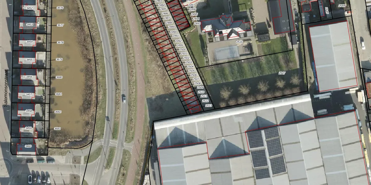 Gebruik de zoekbalk of klik op een perceel voor informatie over de adressen binnen dit perceel.