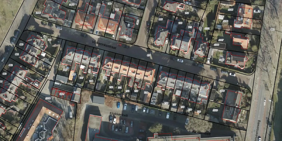 Gebruik de zoekbalk of klik op een perceel voor informatie over de adressen binnen dit perceel.