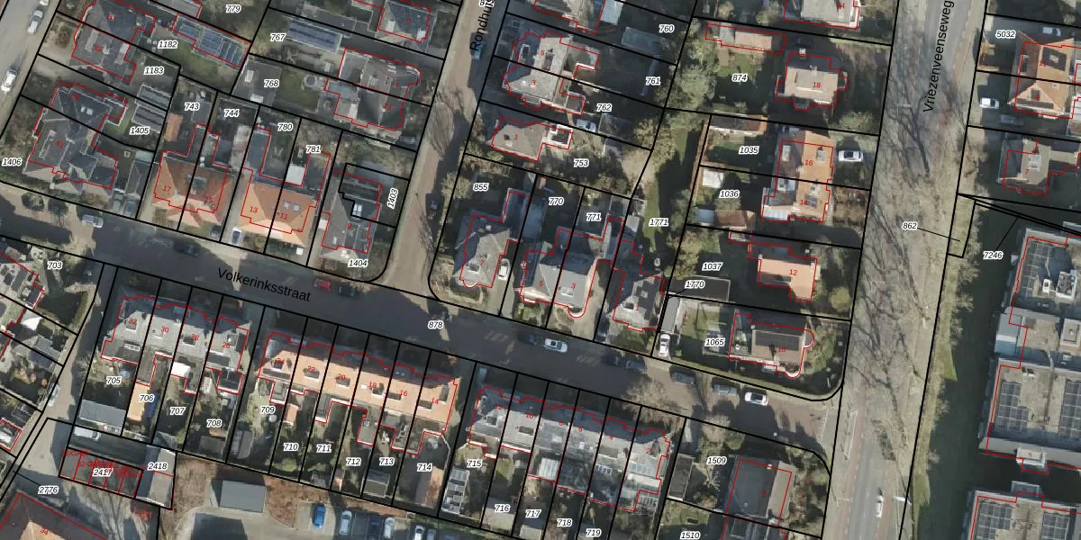 Het perceel waarop Volkerinksstraat 5 staat heeft een oppervlakte van 250 m². Dit is een middelgroot perceel. De perceeloppervlakte wordt geregistreerd door het Kadaster. Gedetailleerde informatie over de maten van dit perceel kunt u vinden in het rapport Kadastrale kaart met maatvoering van Volkerinksstraat 5.