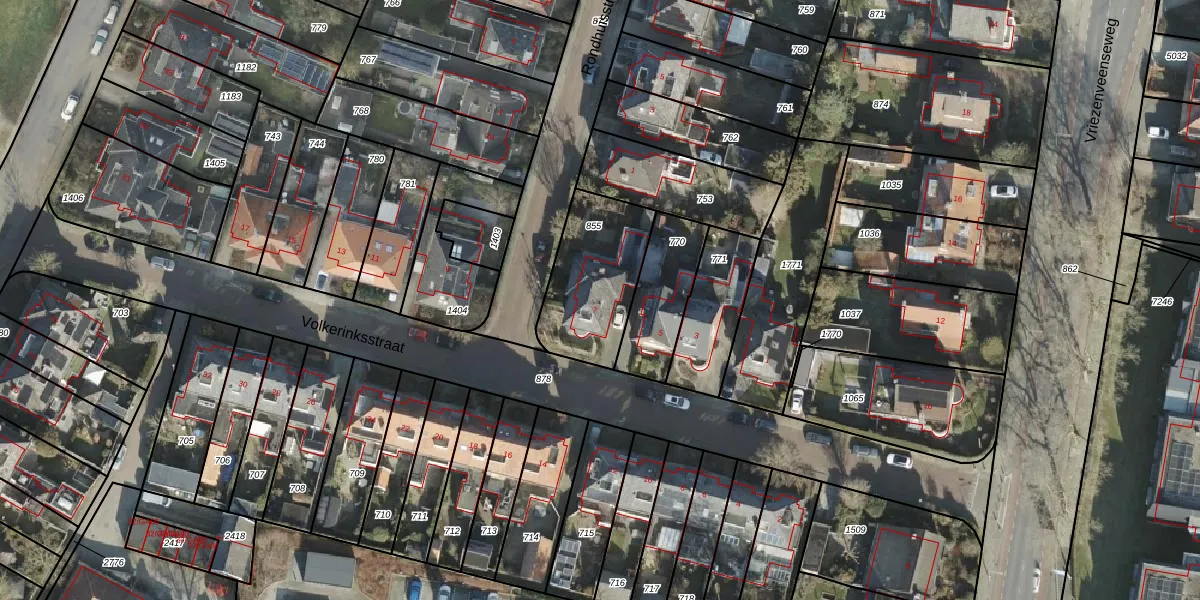 Het perceel waarop Volkerinksstraat 7 staat heeft een oppervlakte van 396 m². Dit is een groot perceel. De perceeloppervlakte wordt geregistreerd door het Kadaster. Gedetailleerde informatie over de maten van dit perceel kunt u vinden in het rapport Kadastrale kaart met maatvoering van Volkerinksstraat 7.