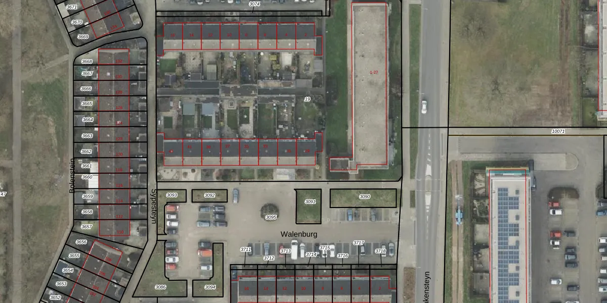 Het perceel waarop Walenburg 29 staat heeft een oppervlakte van 4535 m². Dit is een zeer groot perceel. De perceeloppervlakte wordt geregistreerd door het Kadaster. Gedetailleerde informatie over de maten van dit perceel kunt u vinden in het rapport Kadastrale kaart met maatvoering van Walenburg 29.