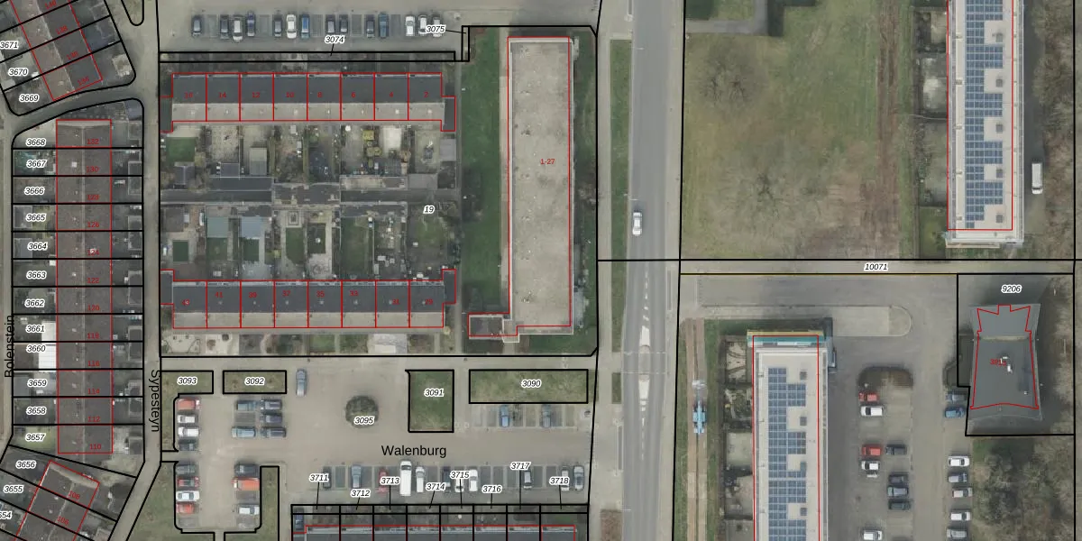 Het perceel waarop Walenburg 3 staat heeft een oppervlakte van 4535 m². Dit is een zeer groot perceel. De perceeloppervlakte wordt geregistreerd door het Kadaster. Gedetailleerde informatie over de maten van dit perceel kunt u vinden in het rapport Kadastrale kaart met maatvoering van Walenburg 3.