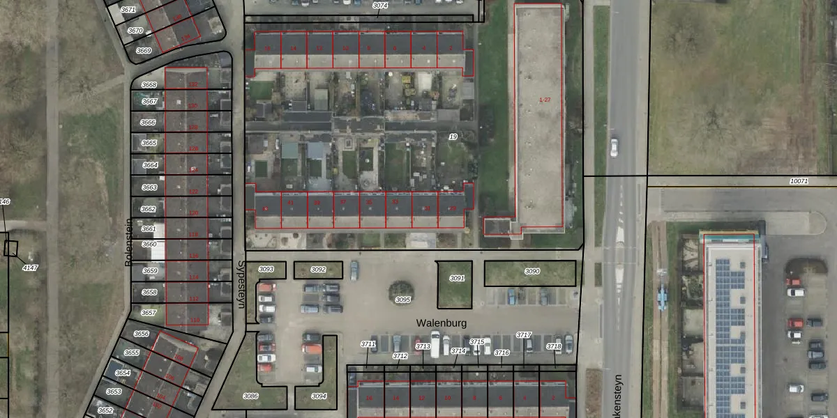 Het perceel waarop Walenburg 31 staat heeft een oppervlakte van 4535 m². Dit is een zeer groot perceel. De perceeloppervlakte wordt geregistreerd door het Kadaster. Gedetailleerde informatie over de maten van dit perceel kunt u vinden in het rapport Kadastrale kaart met maatvoering van Walenburg 31.