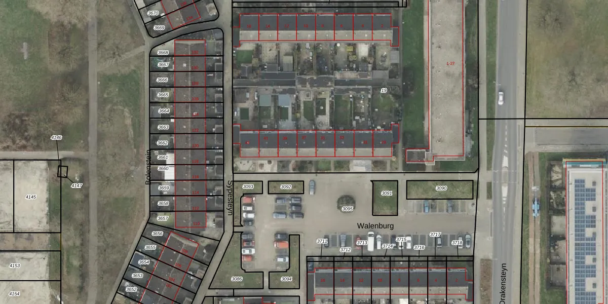 Het perceel waarop Walenburg 37 staat heeft een oppervlakte van 4535 m². Dit is een zeer groot perceel. De perceeloppervlakte wordt geregistreerd door het Kadaster. Gedetailleerde informatie over de maten van dit perceel kunt u vinden in het rapport Kadastrale kaart met maatvoering van Walenburg 37.