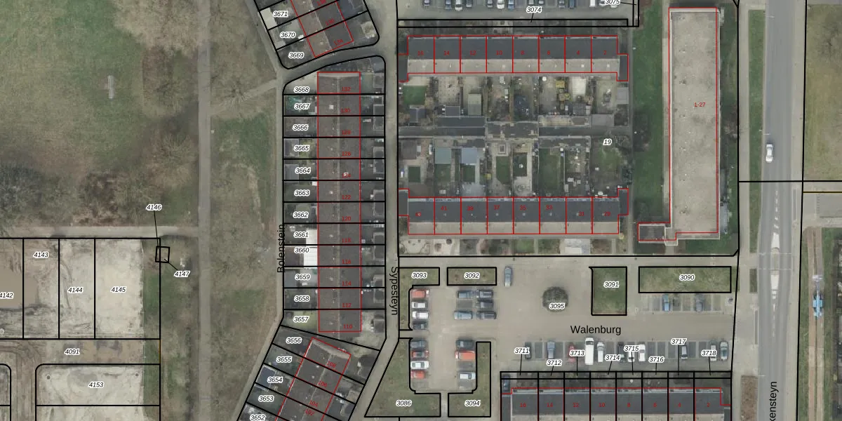 Het perceel waarop Walenburg 43 staat heeft een oppervlakte van 4535 m². Dit is een zeer groot perceel. De perceeloppervlakte wordt geregistreerd door het Kadaster. Gedetailleerde informatie over de maten van dit perceel kunt u vinden in het rapport Kadastrale kaart met maatvoering van Walenburg 43.