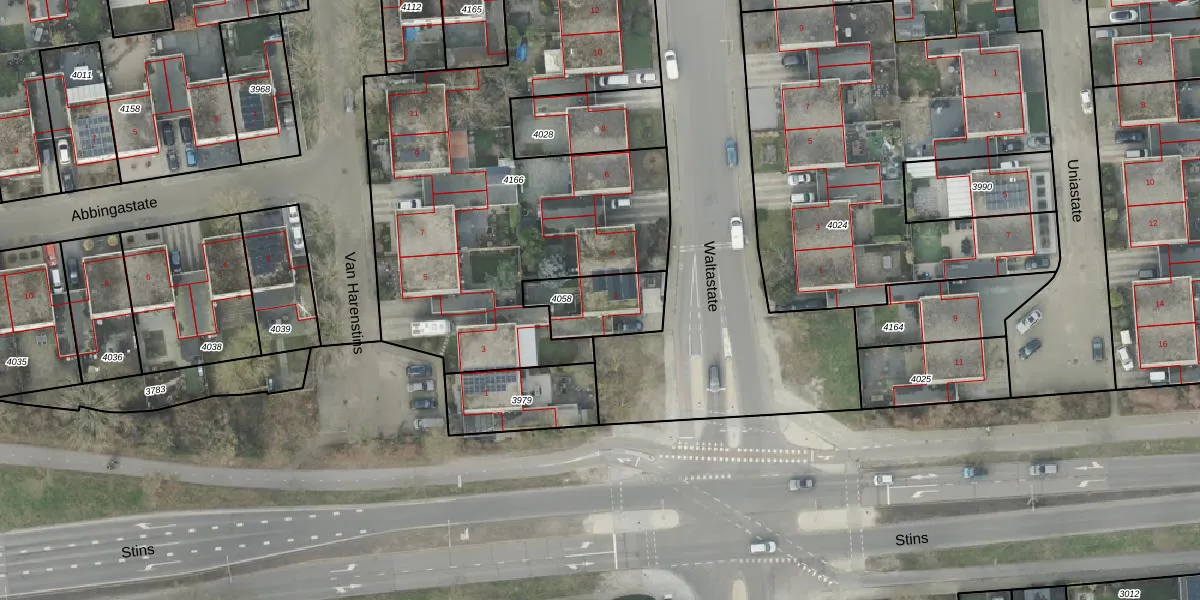 Gebruik de zoekbalk of klik op een perceel voor informatie over de adressen binnen dit perceel.