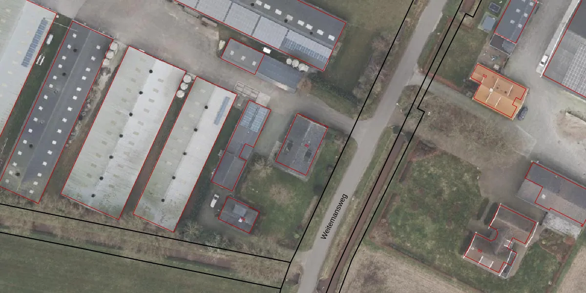 Het perceel waarop Weitemansweg 46 staat heeft een oppervlakte van 4,2 ha. Dit is een zeer groot perceel. De perceeloppervlakte wordt geregistreerd door het Kadaster. Gedetailleerde informatie over de maten van dit perceel kunt u vinden in het rapport Kadastrale kaart met maatvoering van Weitemansweg 46.