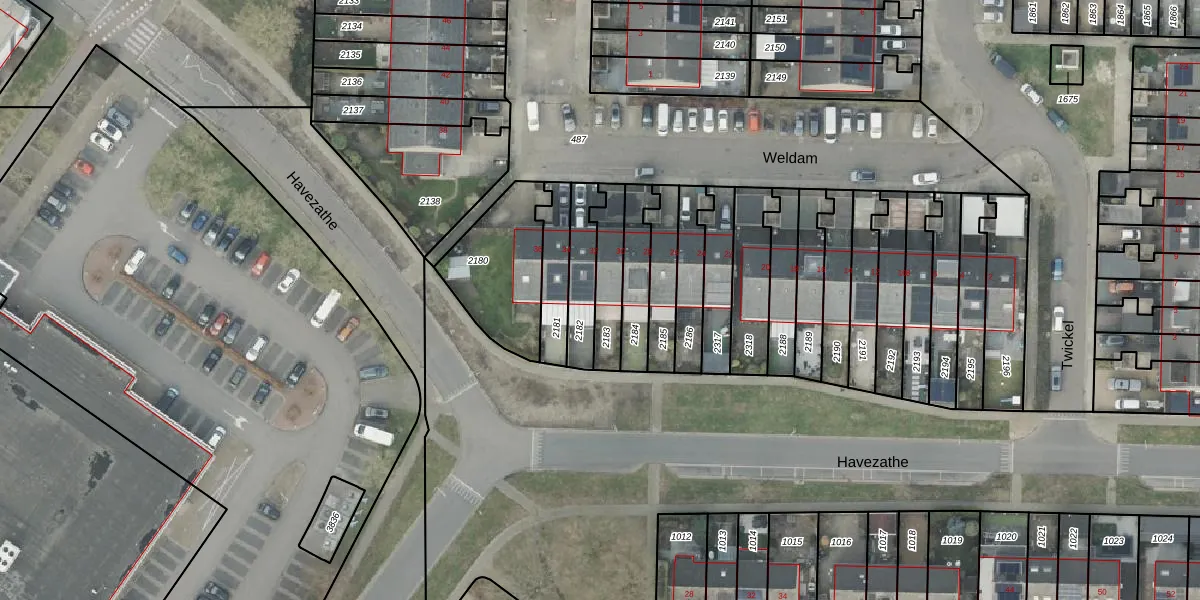 Gebruik de zoekbalk of klik op een perceel voor informatie over de adressen binnen dit perceel.