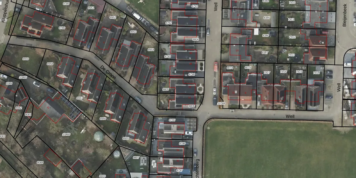 Het perceel waarop Well 16 staat heeft een oppervlakte van 247 m². Dit is een middelgroot perceel. De perceeloppervlakte wordt geregistreerd door het Kadaster. Gedetailleerde informatie over de maten van dit perceel kunt u vinden in het rapport Kadastrale kaart met maatvoering van Well 16.