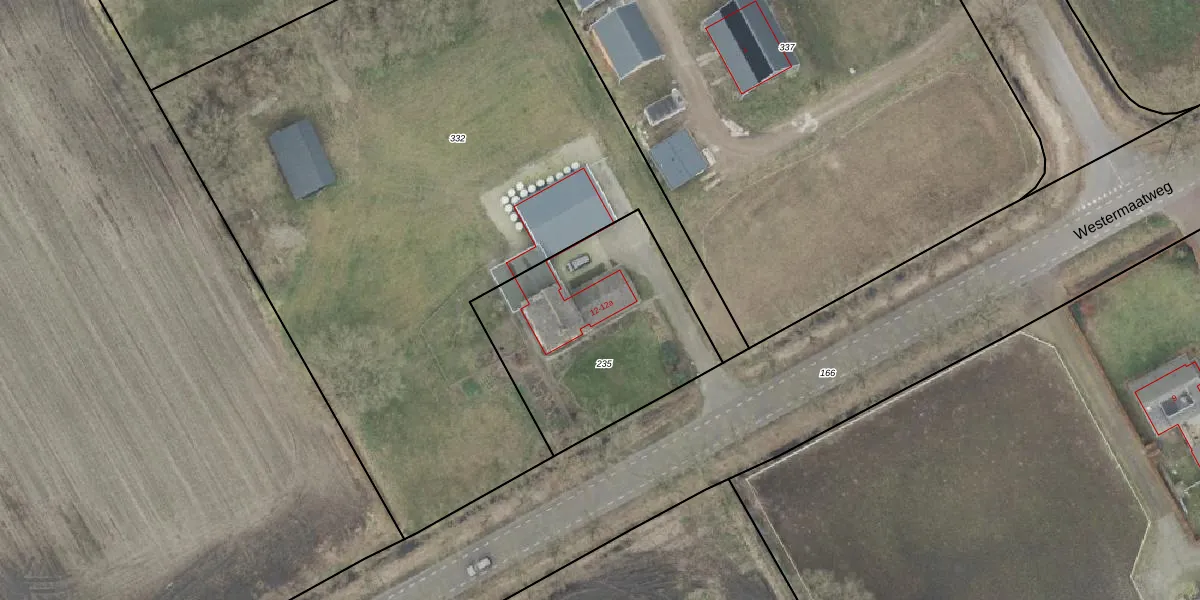 Westermaatweg 12 is gelegen op kadastraal perceel AML01S235. Deze kadastrale aanduiding is uniek en wordt gebruikt door het Kadaster om eigendomsrechten en andere zakelijke rechten vast te leggen. Het perceel maakt onderdeel uit van de kadastrale gemeente Ambt-Almelo.