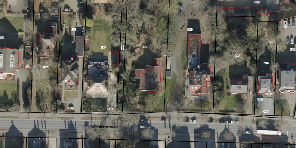 Wierdensestraat 133 is gelegen op kadastraal perceel AML01A7503. Deze kadastrale aanduiding is uniek en wordt gebruikt door het Kadaster om eigendomsrechten en andere zakelijke rechten vast te leggen. Het perceel maakt onderdeel uit van de kadastrale gemeente Ambt-Almelo.