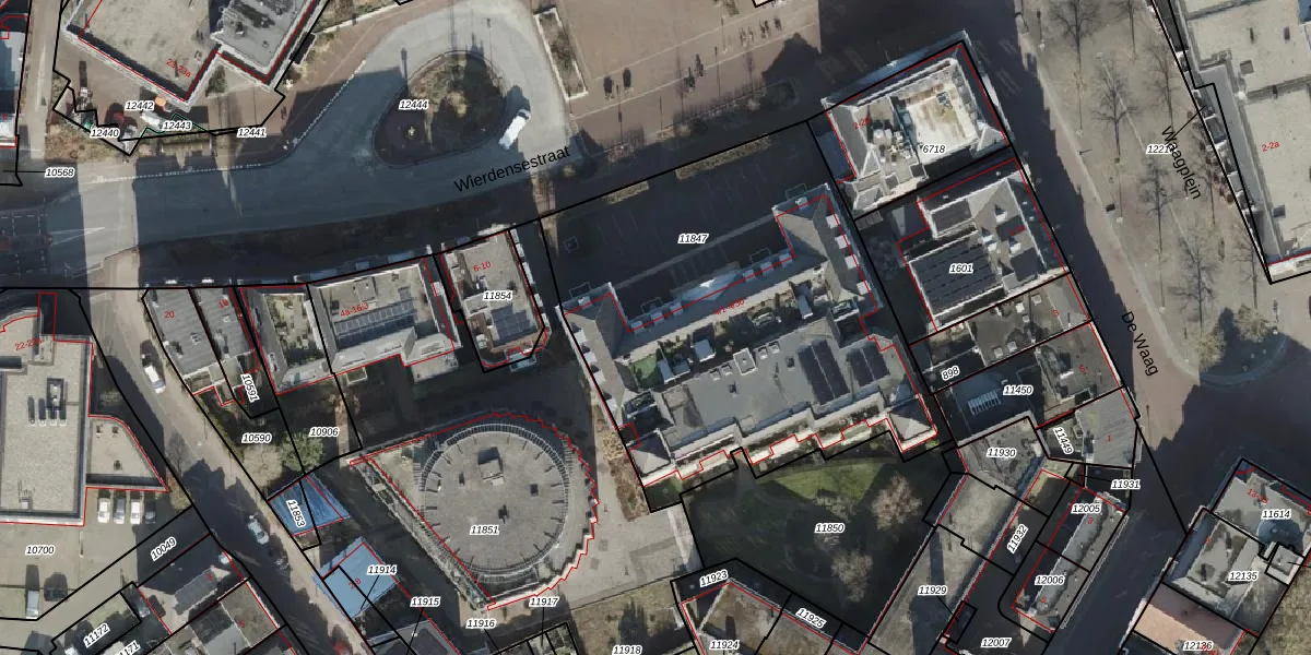 Wierdensestraat 4-12 is gelegen op kadastraal perceel AML02B11847. Deze kadastrale aanduiding is uniek en wordt gebruikt door het Kadaster om eigendomsrechten en andere zakelijke rechten vast te leggen. Het perceel maakt onderdeel uit van de kadastrale gemeente Stad-Almelo.