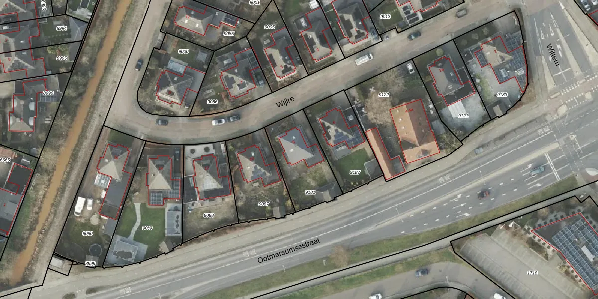 Gebruik de zoekbalk of klik op een perceel voor informatie over de adressen binnen dit perceel.